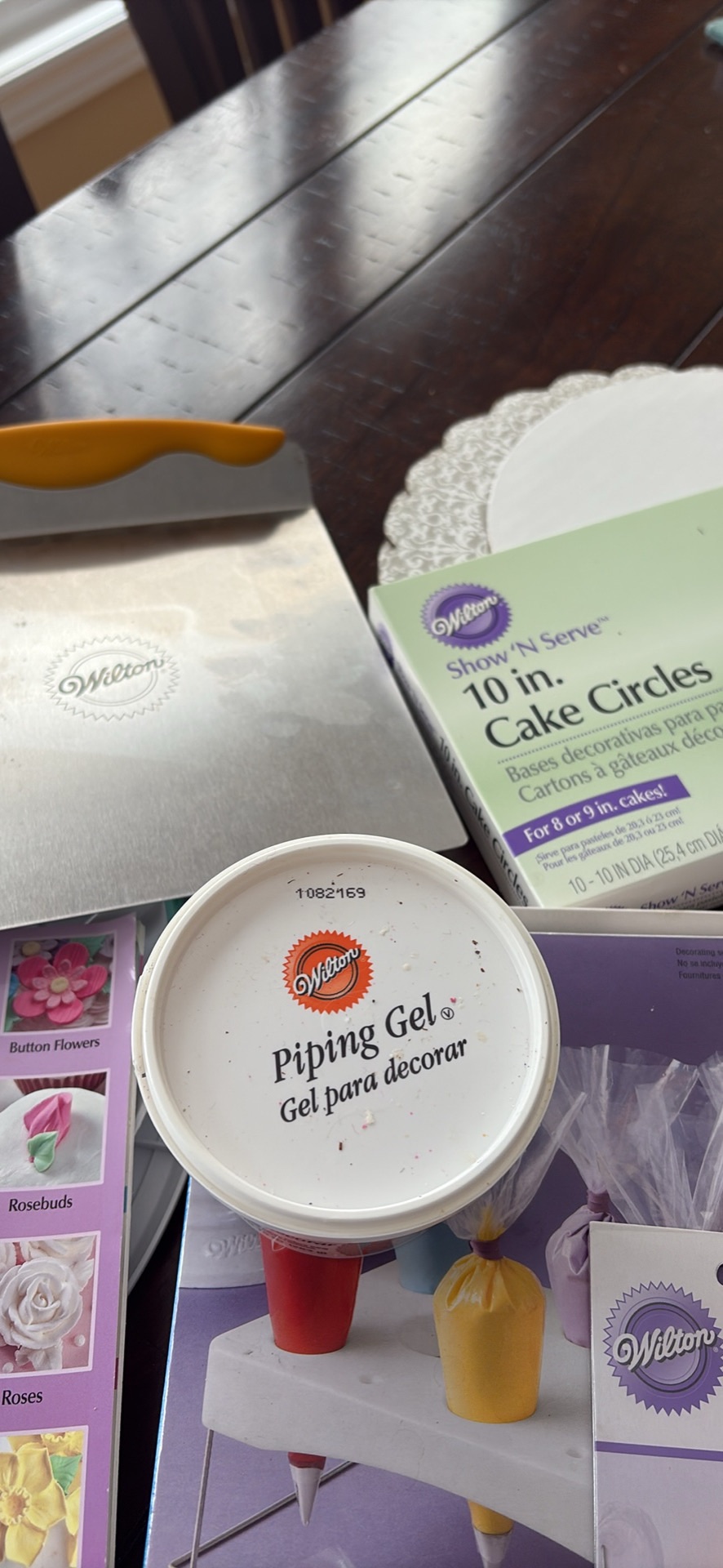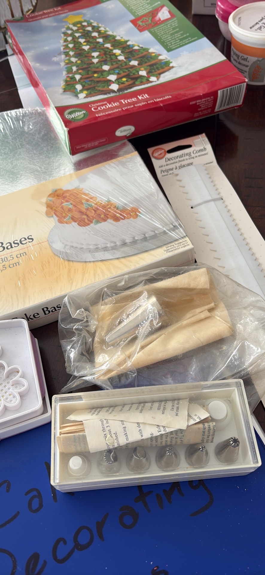 Brand new in package. Lots of cake decorating supplies Wilton brand. More than shown in pictures. Plus 3 instruction Manuals Valued over $200.